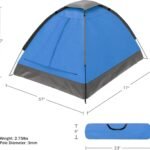 - PRODUCT DETAILS – Materials: 190T Polyester and Fiberglass. Dimensions: (L) 77″ x (W) 57″ x (H) 40″; Pole Diameter: 3mm; Carrying Bag: (L) 23″ x (W) 4″. Weight: 2.75lbs. Capacity: 2 People. Color: Blue and Gray.