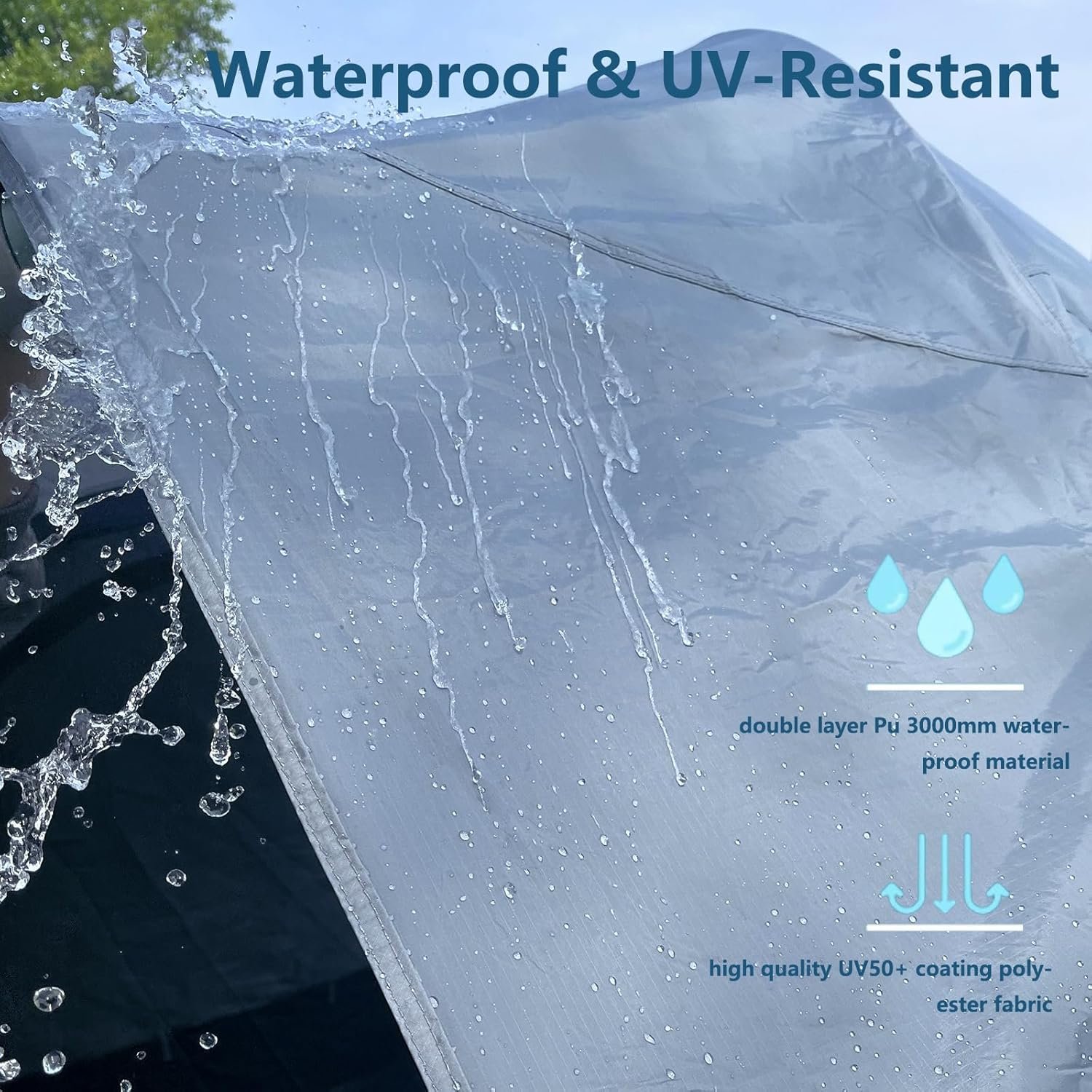 - HIGH QUALITY: This SUV tent is constructed from high-quality and weather-resistant double layer PU 3000mm and UV50+ coating polyester fabric, which ensuring waterproof reliability in rainy weather and UV protection in the sun. Weather-resistant material make it a compatible choice across all seasons, The will ensuring a reliable and long-lasting shelter, It will transform your family’s future camping trips.