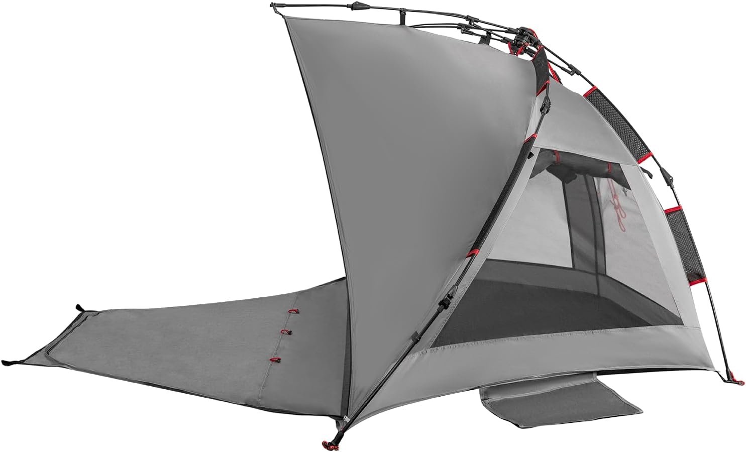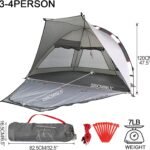 Beach Tent Sun Shelter 3-4 Person Easy Setup Portable Sunshade Canopy Large,Extended Floor,Stakes,Sand Pockets,UPF 50+ Waterproof Windproof Outdoor Camping Fishing Picnic