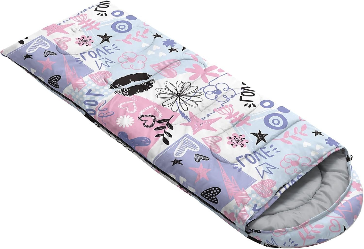 - SUITABLE:The sleeping bag can be used for 3 Seasons.SIZE:90.5″L x 31.5″W Suggenal extreme temperature: 41 ℉ -77 ℉.Applicable in a variety of scenarios,such as Travel camping pajamas party,It’s very suitable for you to travel with your children.Half-circle hood with adjustable drawstring,which can keep you warm and prevent your humidity