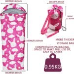 - Kids sleeping bag is designed with backpack style sack. Each sleeping bag comes with a compression sack with straps, allow you convenient carry and storage. Our sleeping bags have 2-way zipper which can fully open as a blanket and let your feet come out
