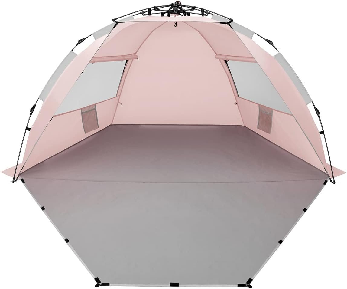 X-Large 4 Person Beach Tent Sun Shelter – Portable Sun Shade Instant Tent for Beach with Carrying Bag, Stakes, 6 Sand Pockets, Anti UV for Fishing Hiking Camping, Waterproof Windproof, Pink